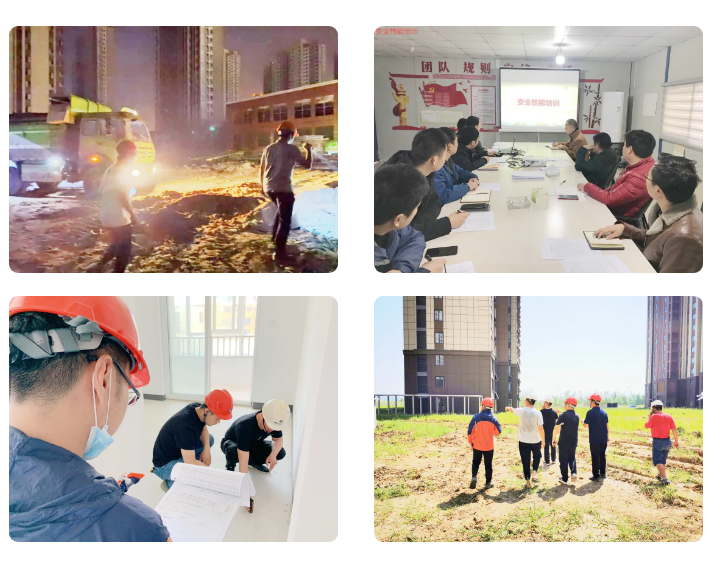各在建项目部倒排时间、压实责任、挂图作战,严把质量关、安全关,同时结合党员“示范岗、责任区”,开展岗位技能大炼兵、组织学习考察交流,无论是今年即将交付的沁园项目、国际人才公寓C地块,还是肥东白龙机场、协鑫厂房新涉领域,党员领导干部都带头投身一线,项目部全体党员、职工群众都特别发扬不叫苦、不喊累,舍“小家”、顾“大家”,不分天寒暑热,昼夜轮班蹲点巡检、周末节假日依然坚守岗位,确保如期高质量完成各项建设任务。